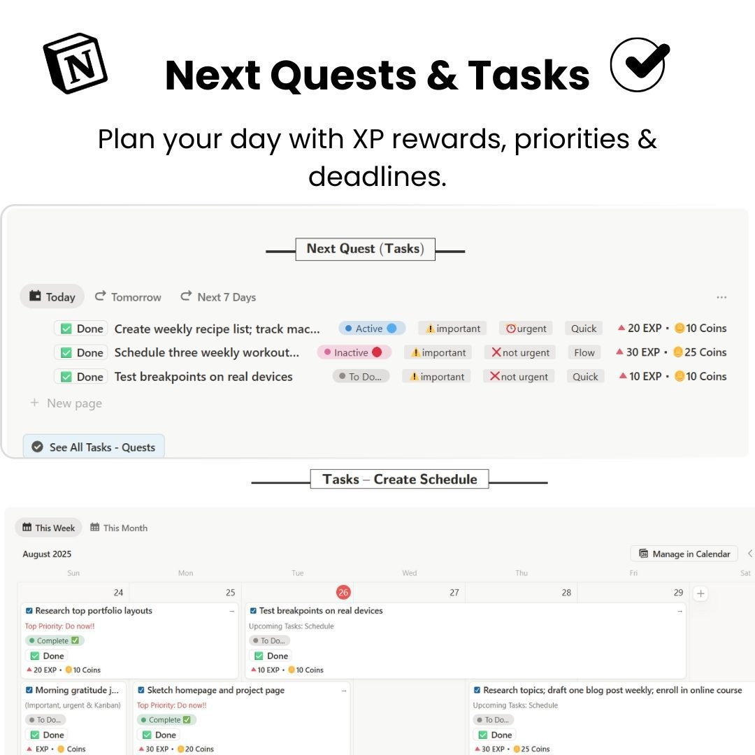 This template gamified my entire life. I’m actually excited to check off tasks now instead of dreading them. The XP system keeps me motivated!